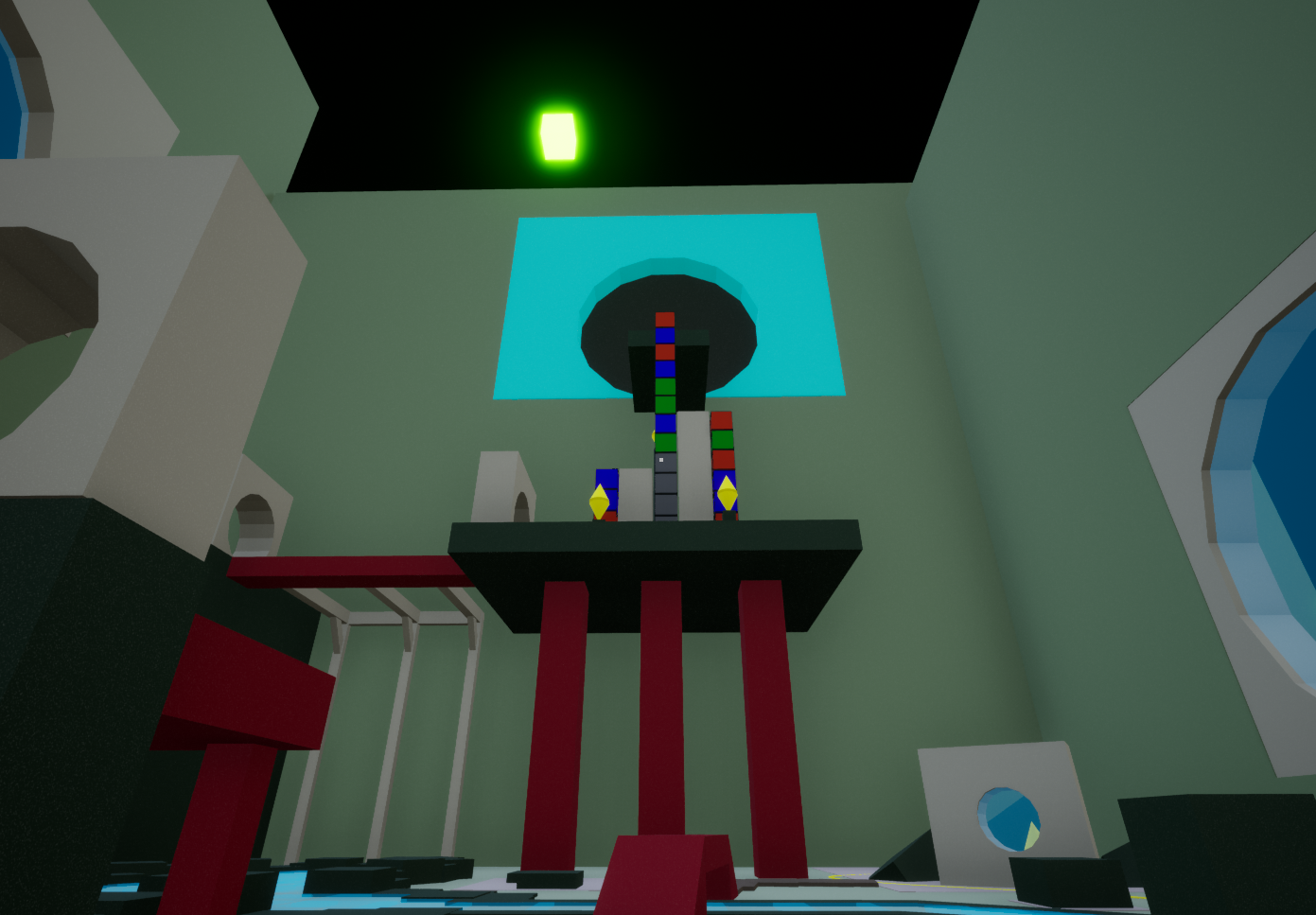 The setting is what really changed everything. The room became bigger, bridges were added and I created a color palette for the level. The end product started to materialize.